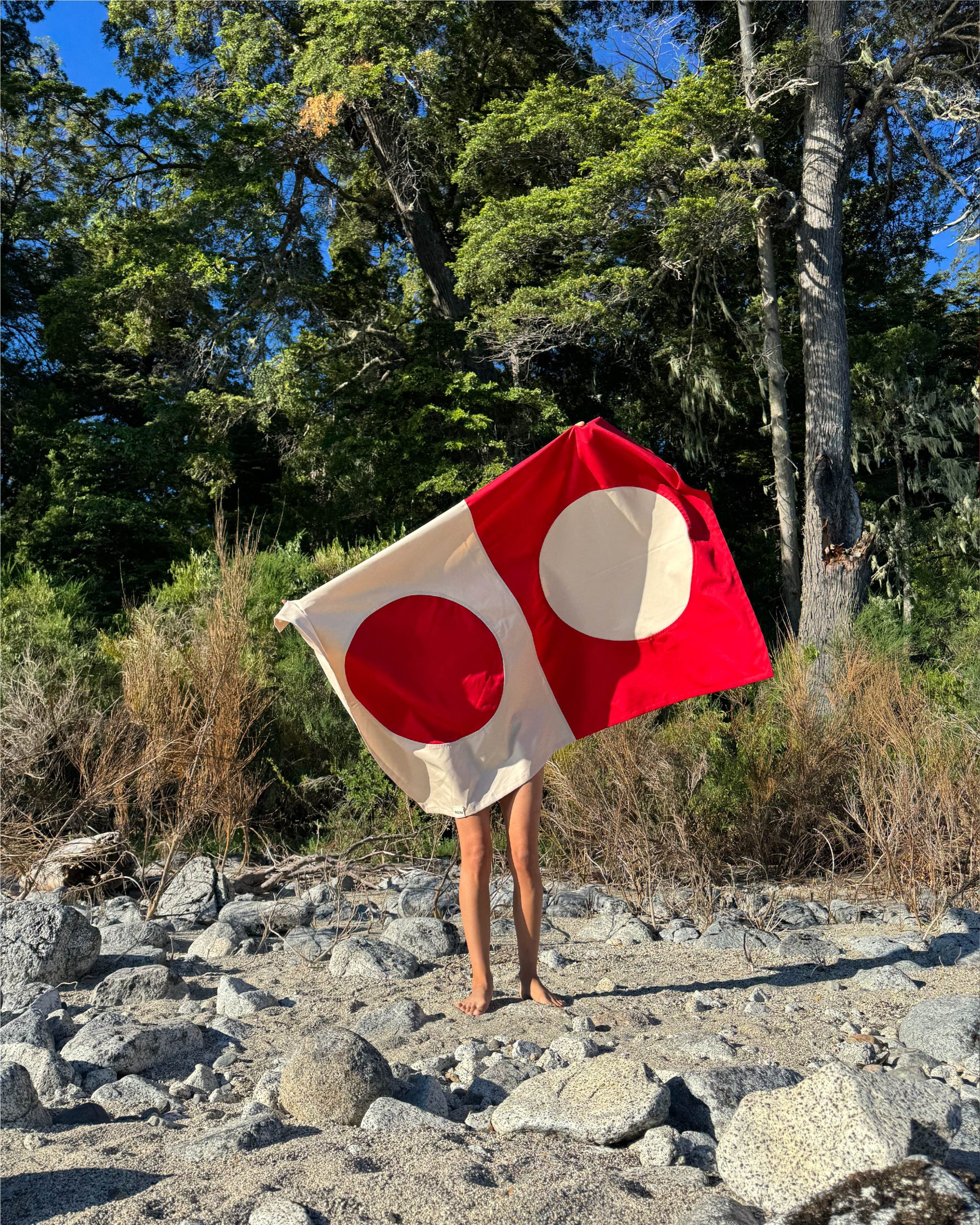 Pensada para usar de mil maneras: extendida en la playa, vistiendo una mesa, al pie de la cama, decorando una pared o cubriendo el sillón. Pieza versátil, nacida de procesos lentos y cuidados.