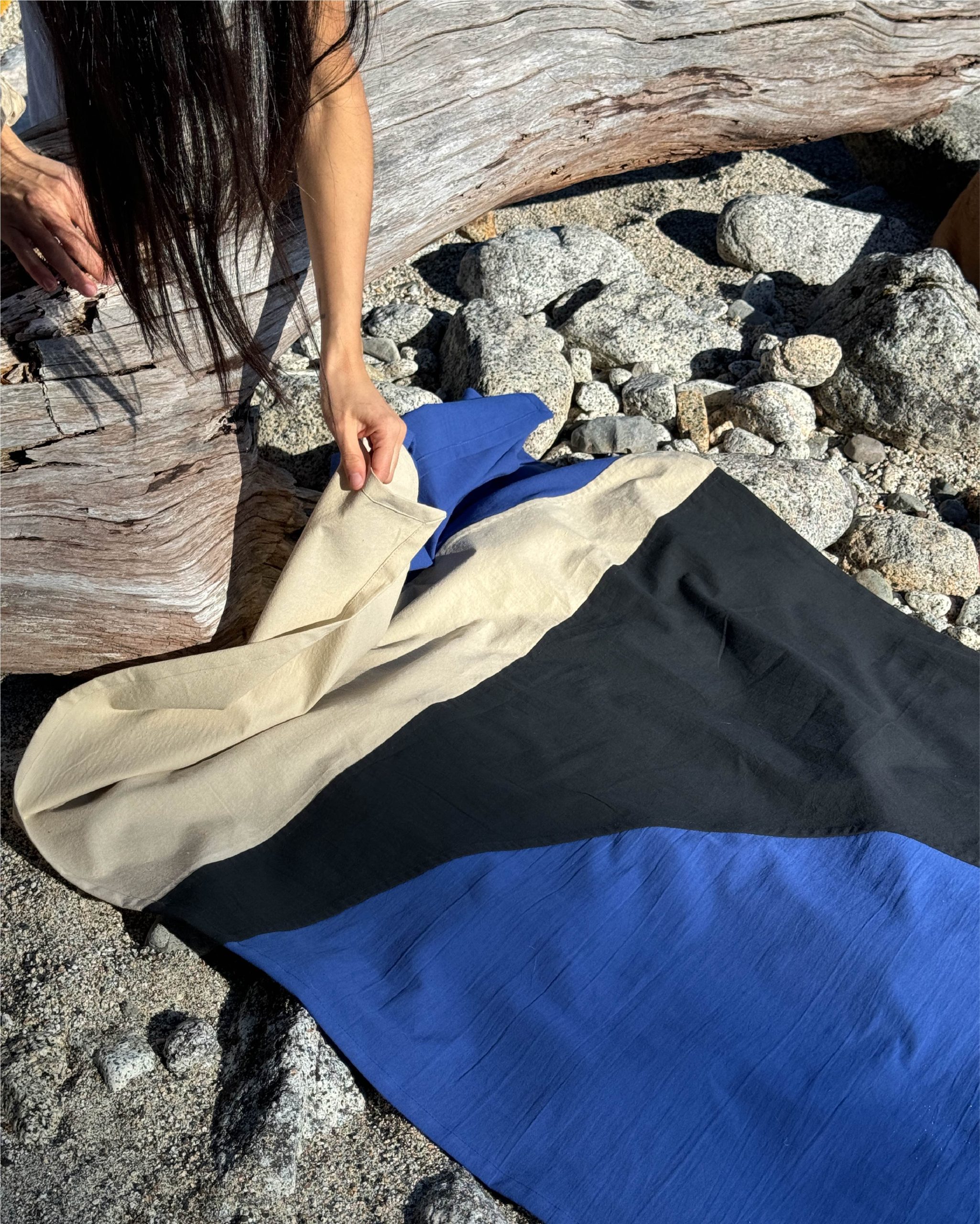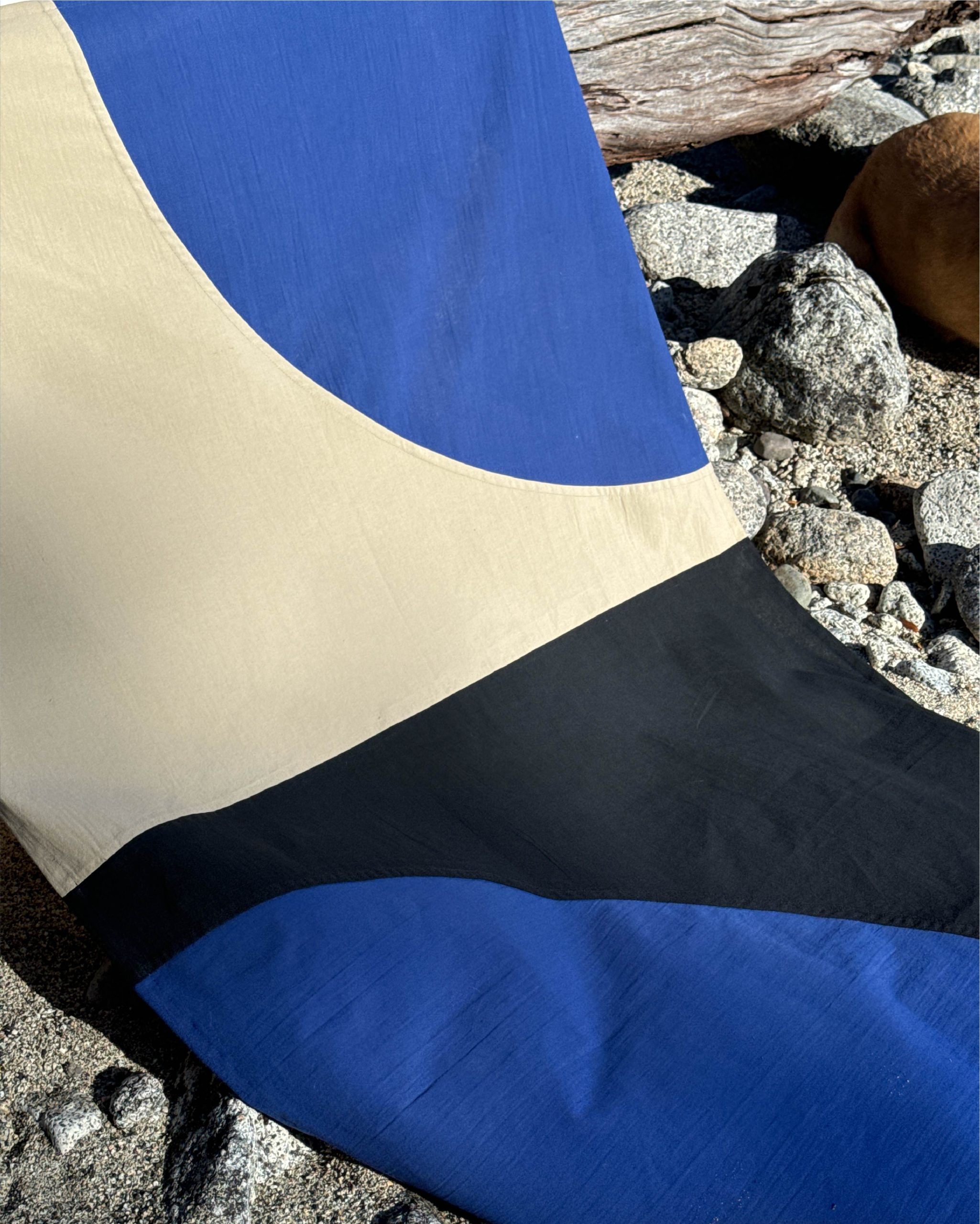 Pensada para usar de mil maneras: extendida en la playa, vistiendo una mesa, al pie de la cama, decorando una pared o cubriendo el sillón. Pieza versátil, nacida de procesos lentos y cuidados.