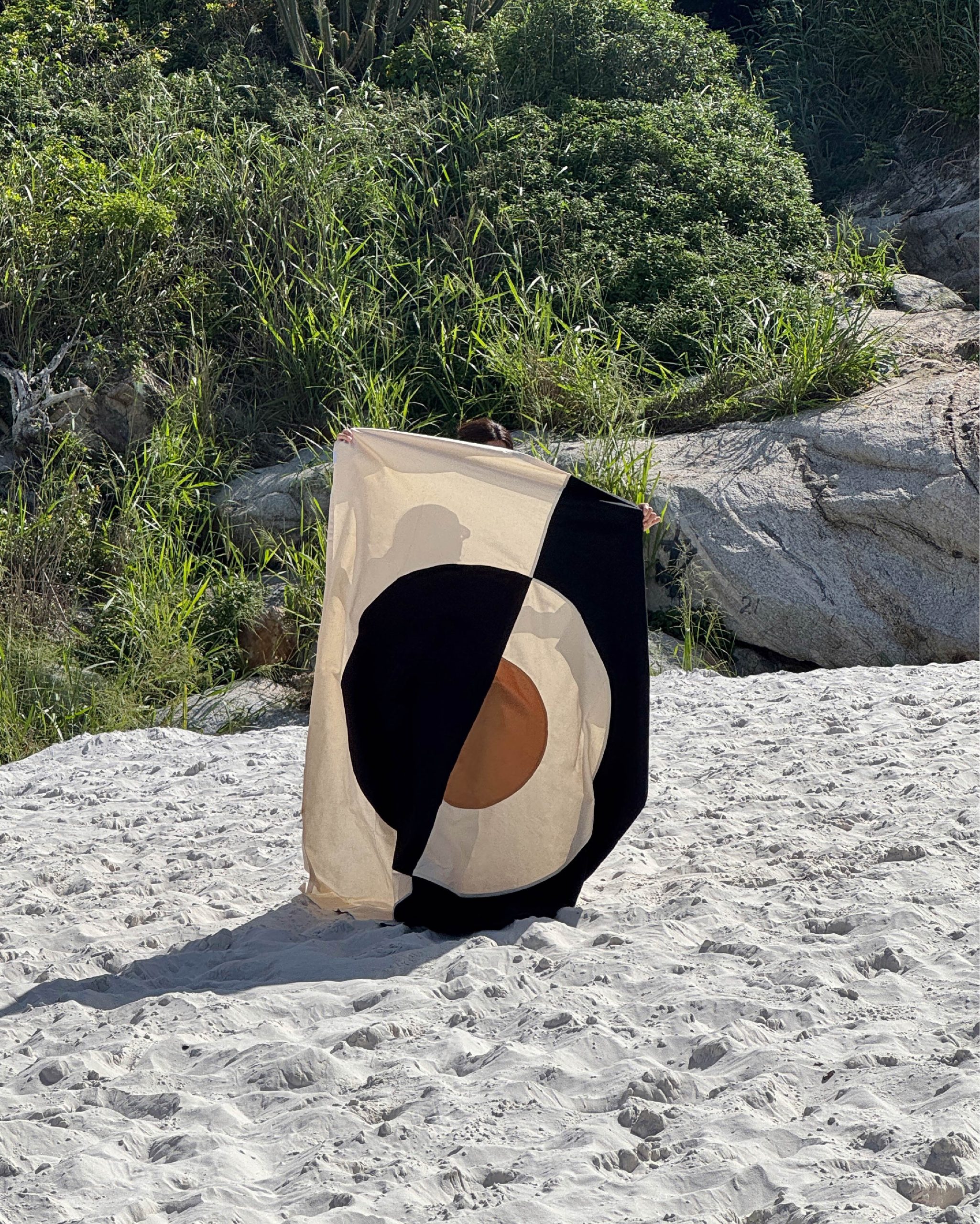 Pensada para usar de mil maneras: extendida en la playa, vistiendo una mesa, al pie de la cama, decorando una pared o cubriendo el sillón. Pieza versátil, nacida de procesos lentos y cuidados.