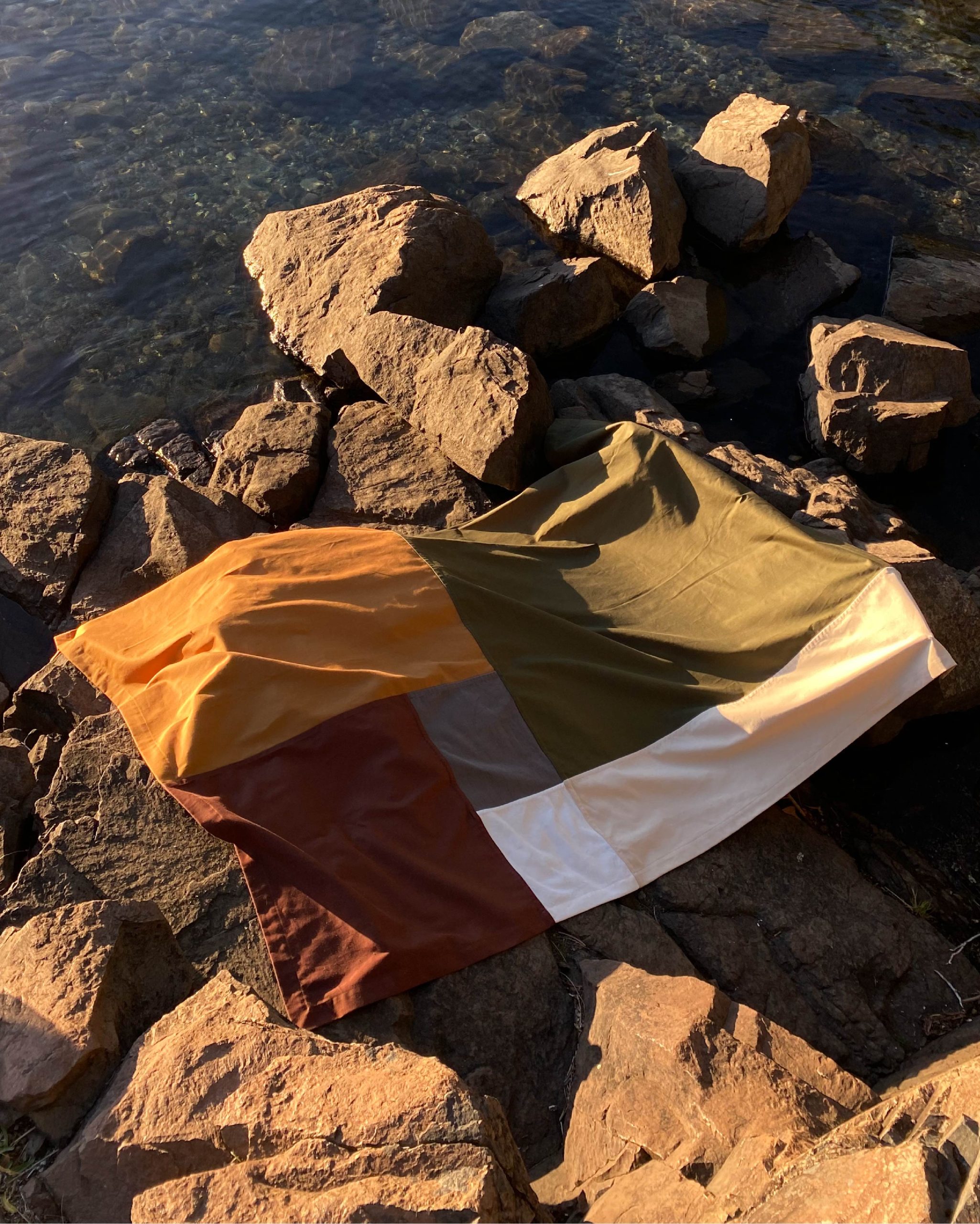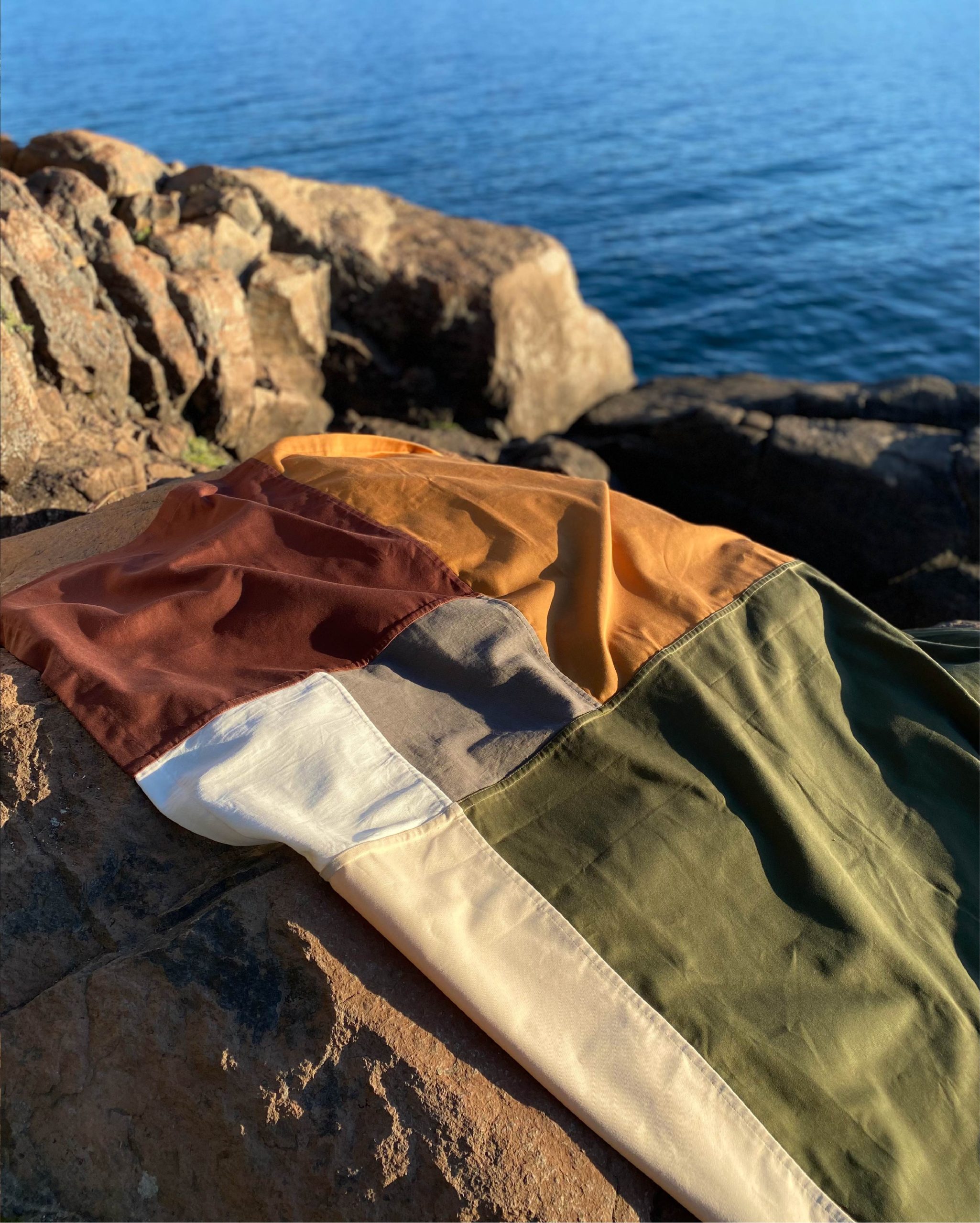 Pensada para usar de mil maneras: extendida en la playa, vistiendo una mesa, al pie de la cama, decorando una pared o cubriendo el sillón. Pieza versátil, nacida de procesos lentos y cuidados.