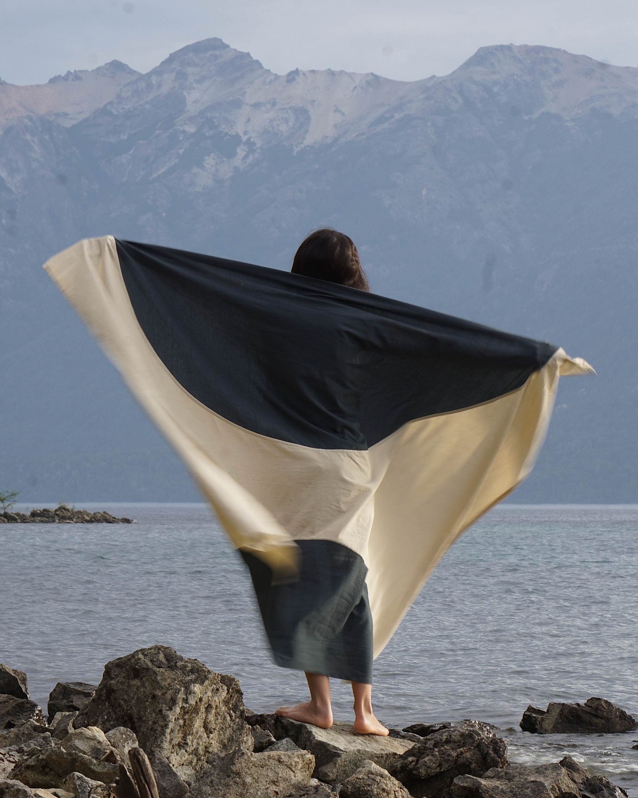 Pensada para usar de mil maneras: extendida en la playa, vistiendo una mesa, al pie de la cama, decorando una pared o cubriendo el sillón. Pieza versátil, nacida de procesos lentos y cuidados.